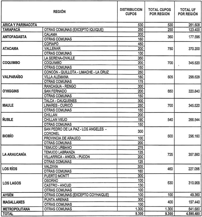 2. Cupos regionales de subsidios: