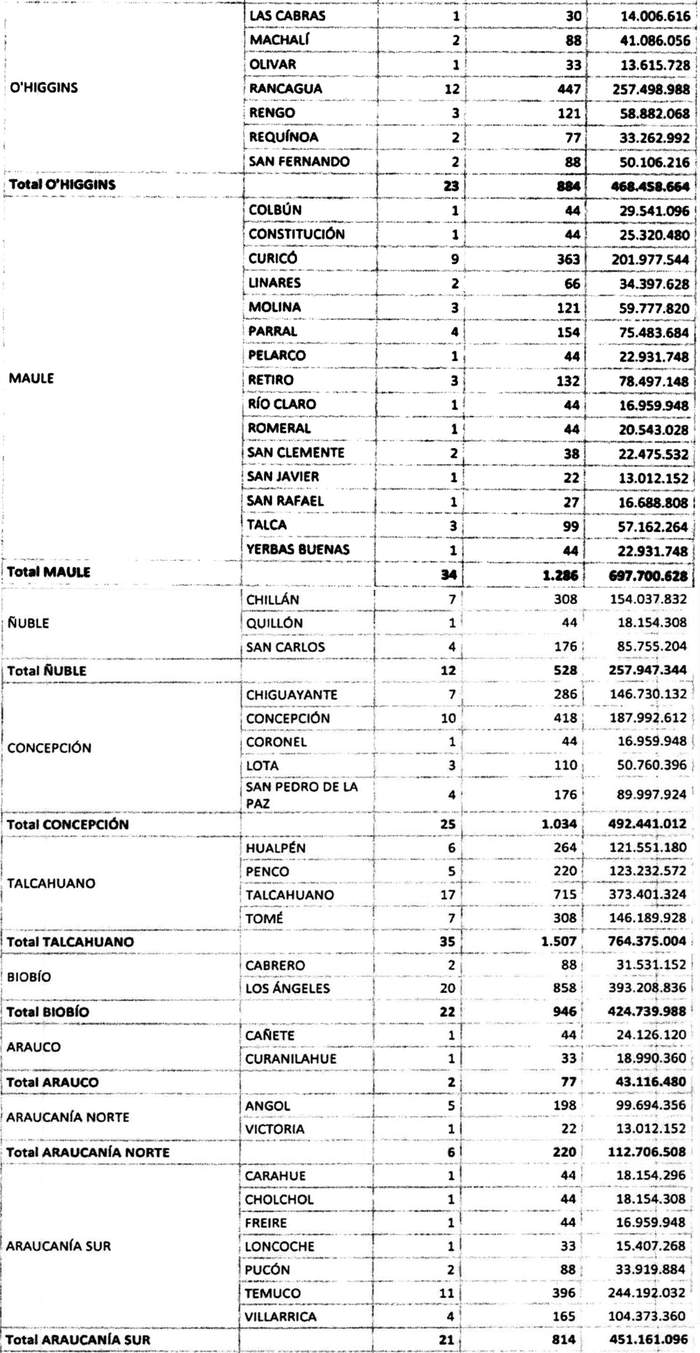 Las entidades administradoras de salud municipal que se indican a continuación, concederán dicha asignación a los médicos cirujanos que cuenten con esta especialidad, para lo que contarán con los siguientes recursos para ello, en atención al número de profesionales y de horas semanales contratadas, conforme se indica a continuación: