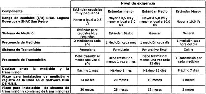 Cuadro Nº 1. Niveles de exigencia para las obras de captación de aguas subterráneas ubicadas en la Región del Maule, específicamente en los Sectores Hidrológicos de Aprovechamiento Común (SHAC) Laguna Boyeruca y Estero San Pedro. (Las coberturas espaciales de dichos sectores hidrogeológicos es posible visualizarlas en la página web de esta Dirección).