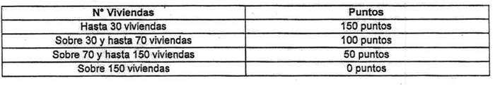 c) Tamaño del proyecto: Puntaje según el número de viviendas del proyecto: