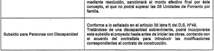 - Modifica en la fila correspondiente al subsidio base, en el sentido de incorporar la siguiente oración inicial: "1.250 UF para proyectos de hasta 40 Viviendas", y