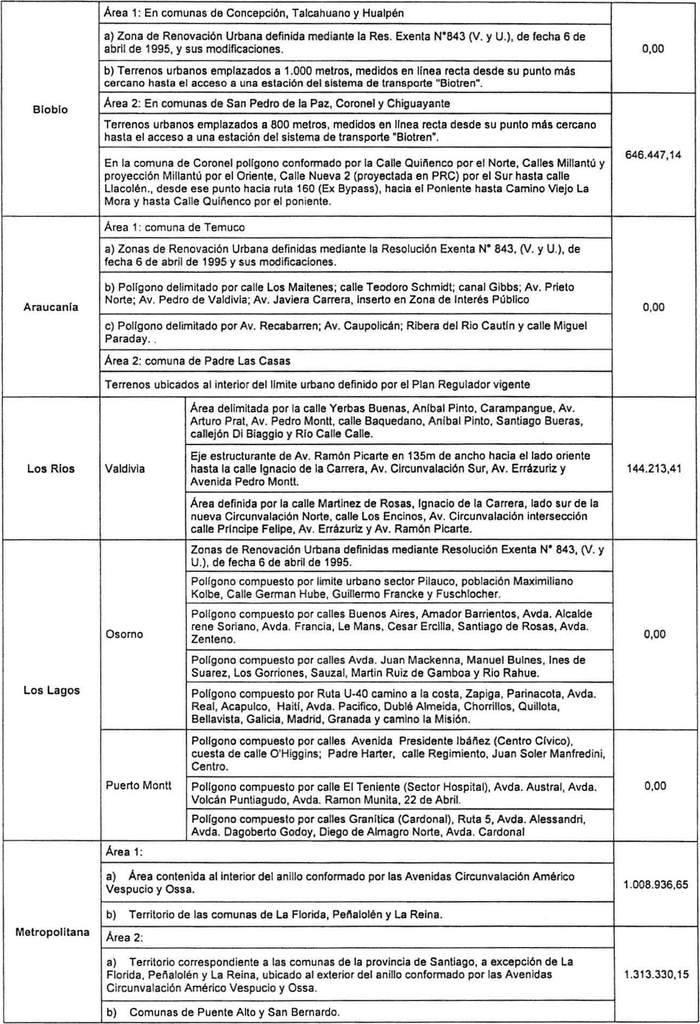 Las letras c y d del numeral 1.2 del numero 1 de la Resolución 609 Exenta, Vivienda, publicada el 19.05.2022, modifica la presente norma en el sentido reemplazar en el Área 2 de la Región de Biobío, el polígono correspondiente a la comuna de Coronel como indica la citada norma asimismo incorpora un monto de 200.000 Unidades de Fomento en la columna "Recursos" para el Área 1 de la Región Metropolitana.