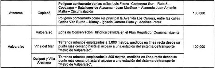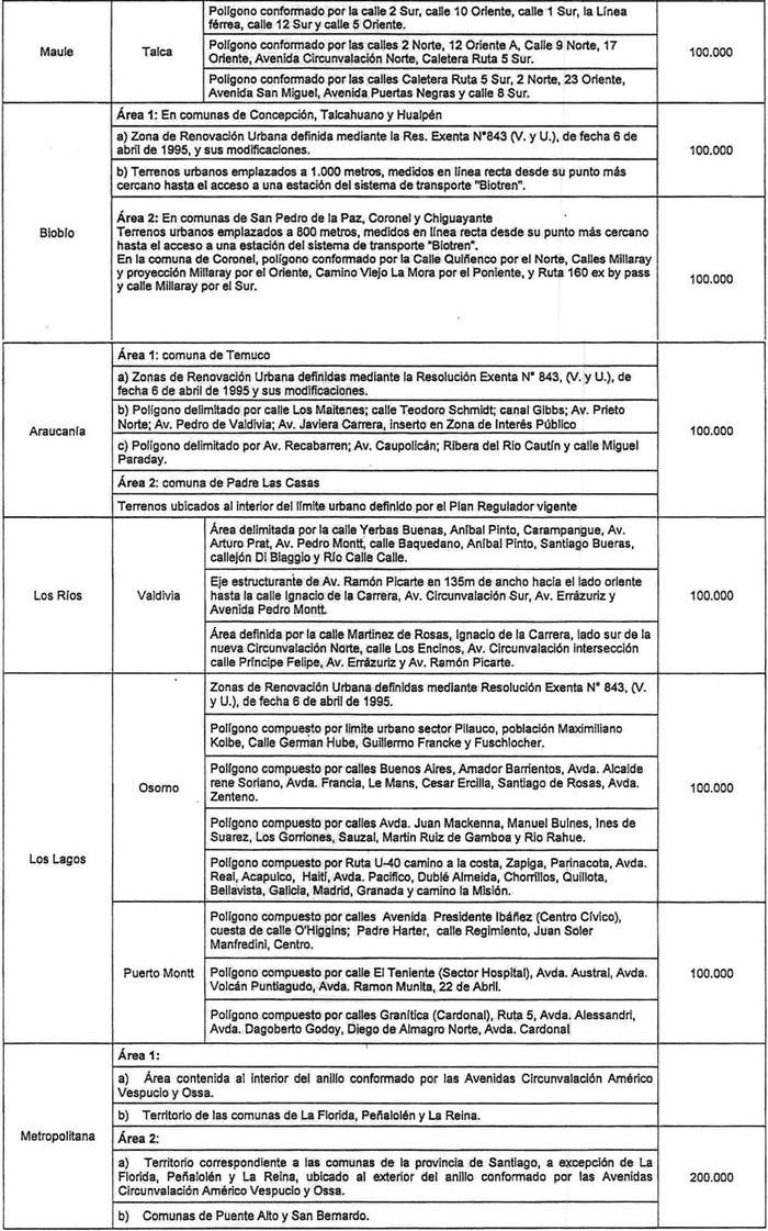 Para acceder a este subsidio, los terrenos a adquirir deberán emplazarse, total o parcialmente, en áreas urbanas o de extensión urbana de los territorios o polígonos señalados en el cuadro inserto en el Resuelvo 3 de esta resolución y contar con norma urbanística vigente para el desarrollo del proyecto habitacional.