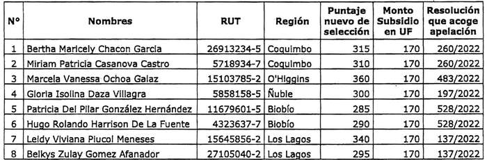2. Apruébase la siguiente nómina complementaria de postulantes seleccionados al llamado nacional dispuesto en el número 1 de la resolución exenta N° 659, de este Ministerio, de 2021, del Programa de Subsidio de Arriendo de Vivienda regulado por el DS N° 52 (V. y U.), de 2013, y en particular según lo establecido en sus artículos 29 y 30, los que se individualizan a continuación: