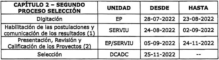 29.2 Sin perjuicio de lo dispuesto en el Capítulo II del DS N° 27 (V. y U.), de 2016, el proceso del llamado para este tipo de viviendas comprenderá también las siguientes etapas: