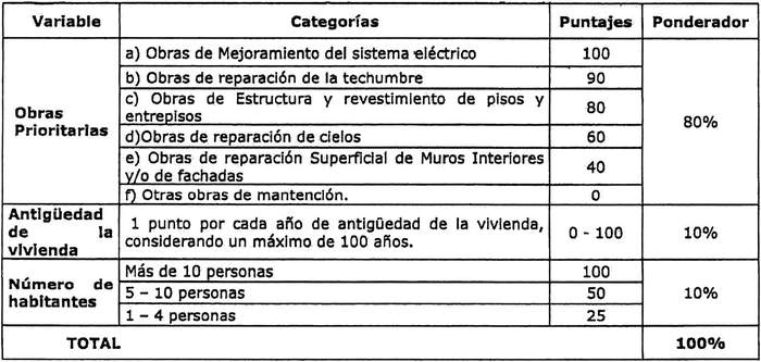 Tabla N° 4 - Factores de Puntaje para Viviendas Antiguas y/o Patrimoniales