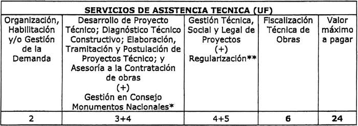 2° Pago, correspondiente a los servicios de Desarrollo de Proyecto Técnico; Diagnóstico Técnico Constructivo; Elaboración, Tramitación y Postulación de Proyectos Técnicos; y Asesoría a la Contratación de Obras: Se pagarán 3 Unidades de Fomento posteriormente a ser seleccionadas las familias. En el caso de Cités o Viviendas Patrimoniales en que el proyecto requiera gestiones del PSAT ante el Consejo de Monumentos Nacionales o la Seremi respectiva, se adicionarán 4 Unidades de Fomento a este primer pago.