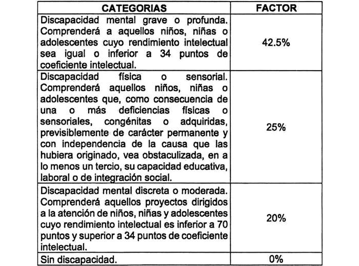 Para los efectos de la determinación del factor asociado al referido criterio se distinguirán las siguientes categorías: