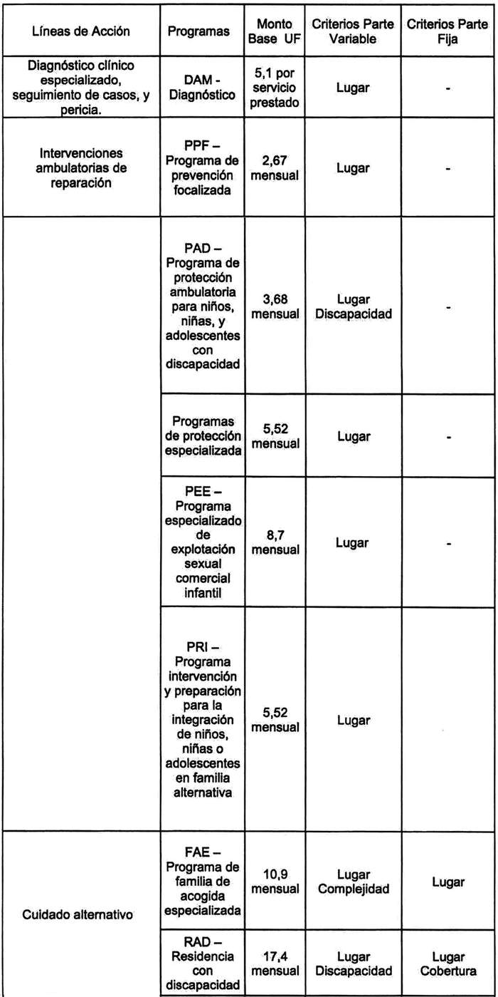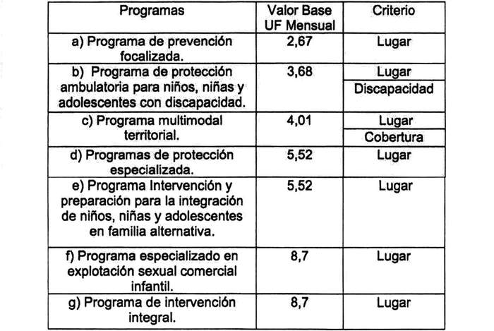 Asimismo, el criterio previsto en este artículo se aplicará al programa de protección ambulatoria para niños, niñas y adolescentes con discapacidad de la línea de acción intervenciones ambulatorias de reparación, previsto en la letra b) de la tabla contenida en el inciso tercero del artículo 13 del presente reglamento.
