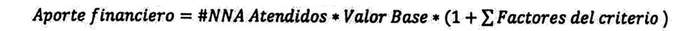 Artículo 13.- Del método de cálculo de la línea de acción intervenciones ambulatorias de reparación. Para el cálculo del valor de los aportes financieros del Estado a transferir a los colaboradores acreditados que desarrollen esta línea de acción, se aplicará la siguiente fórmula de cálculo: