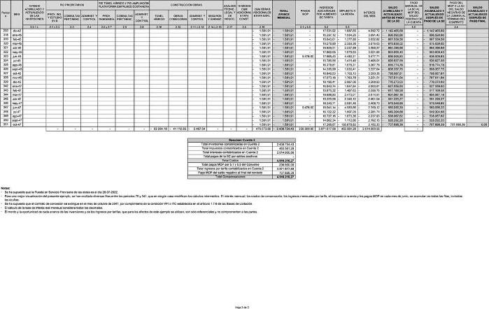 Una vez que se efectúe el pago antes indicado, éste se contabilizará en la "Cuenta N° 2" en el mes de término del contrato de concesión, con signo positivo, de modo de reflejar un saldo acumulado y actualizado de la citada Cuenta igual a cero para dicho mes.