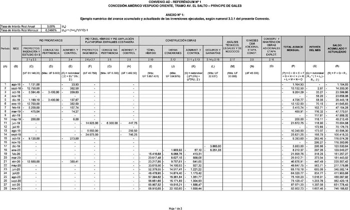 . Anexo N° 1: Ejemplo numérico del avance acumulado y actualizado de las inversiones ejecutadas, según numeral 3.3.1 del presente Convenio.