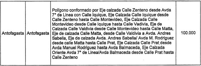 a) Insértase entre las filas correspondientes a las regiones de Tarapacá y Atacama, la siguiente fila correspondiente a la Región de Antofagasta: