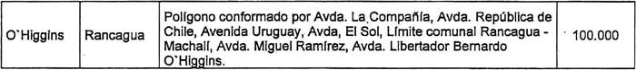 b) Insértase entre las filas correspondientes a las regiones de Valparaíso y Maule, la siguiente fila correspondiente a la Región del Libertador Bernardo O'Higgins: