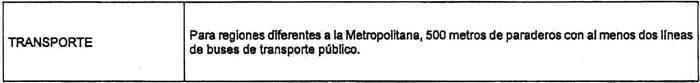 "iv. Cumplir además con al menos 4 de los indicadores señalados en la siguiente tabla, o con 5 en el caso de proyectos de más de 299 viviendas en la Región Metropolitana, considerando los ya existentes o los proyectados con financiamiento público aprobado para su ejecución:".