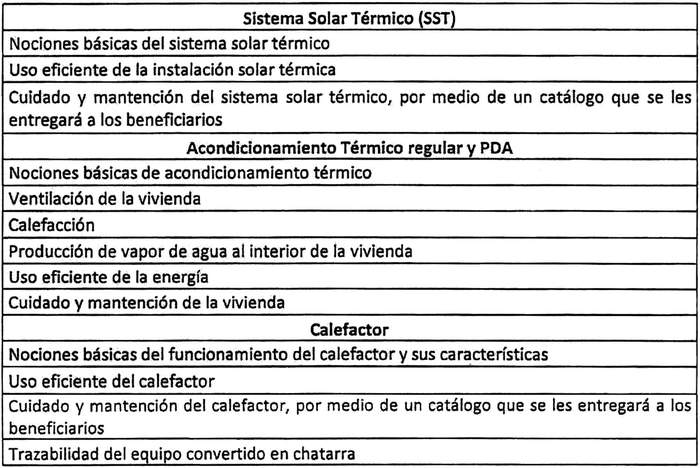 En el caso de los Proyectos de Obras de Innovación en Eficiencia Energética, para la postulación de Colectores Solares (Sistemas Solares Térmicos) y la postulación de Paneles Fotovoltaicos, el PSAT deberá aplicar el Plan de Habilitación Social en proyectos colectivos. Tratándose de Proyectos de Acondicionamiento Térmico Regular, como también en la línea PDA, el PSAT deberá aplicar el Plan de Habilitación Social en proyectos individuales.