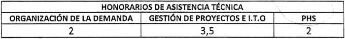 B. Los honorarios de Asistencia Técnica serán de 5 UF para las labores de Organización de la Demanda, de 10 UF para la Gestión de Proyecto e ITO y 5 UF para el Plan de Habilitación Social.