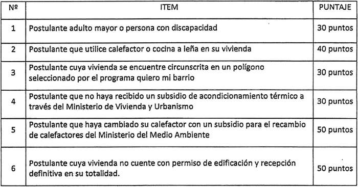 30. En caso de la Región de Aysén, para Proyectos de Habitabilidad del Título II, de Mejoramiento de Vivienda, que tengan como fin cumplir con los requisitos indicados en el artículo 6º bis del DS Nº 255 (V. y U.), de 2006, para el Acondicionamiento Térmico de la Vivienda ubicadas en zonas con Planes de Descontaminación Atmosférica, se tendrán las siguientes consideraciones especiales para los procesos de selección: