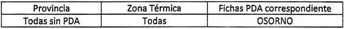 Para acreditar las exigencias de Hermeticidad, en proyectos que se emplacen en Provincias donde no existe un PDA vigente, se deben utilizar las Fichas de "Soluciones de Hermeticidad" correspondientes al PDA de Osorno, según lo indicado en la Tabla 2.
