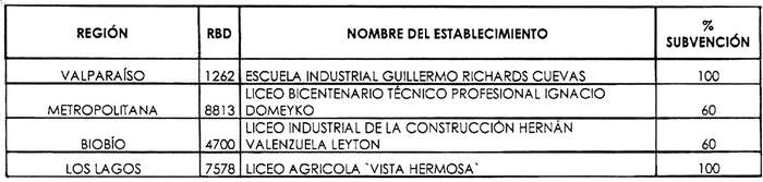 Artículo 1°. Declárase como de desempeño de excelencia para los años 2022 y 2023 y, en consecuencia, beneficiarios de la subvención establecida en el artículo 15 de la ley N° 19.410, a los siguientes establecimientos educacionales regidos por el decreto ley N° 3.166, de 1980:
