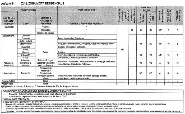 Artículo 11 ZU-2 ZONA MIXTA RESIDENCIAL 2.
