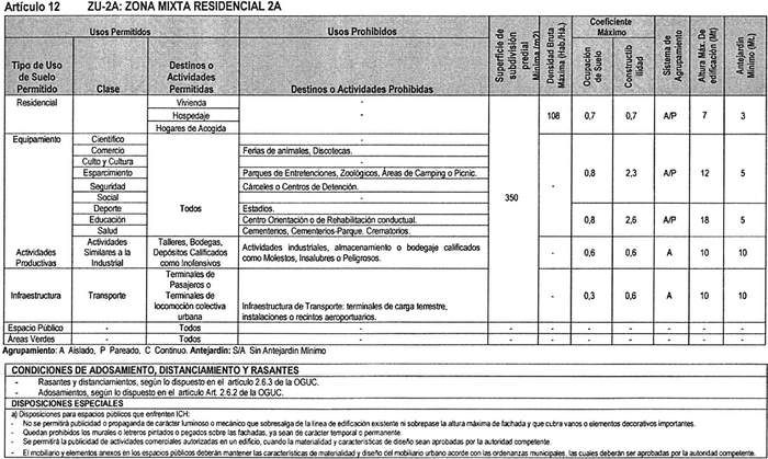 Artículo 12 ZU-2A ZONA MIXTA RESIDENCIAL 2A.