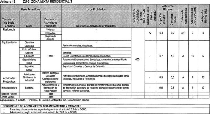 Artículo 13 ZU-3 ZONA MIXTA RESIDENCIAL 3.