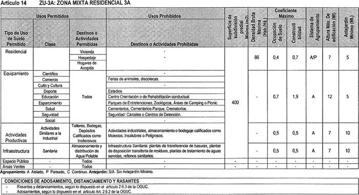 Artículo 14 ZU-3A ZONA MIXTA RESIDENCIAL 3A.