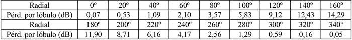 - Diagrama de radiación horizontal de acuerdo a la siguiente tabla: