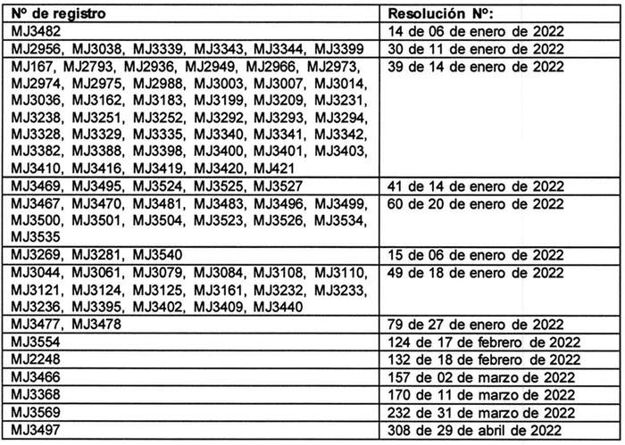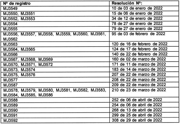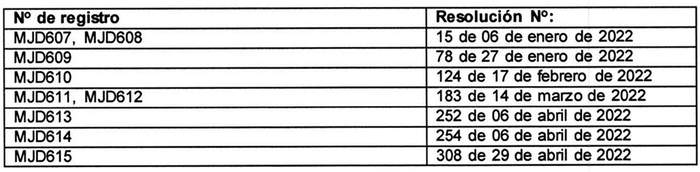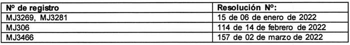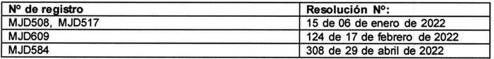 Asimismo, mediante las siguientes Resoluciones Exentas, se procedió a modificar y/o rectificar en el Registro de Homologación las inscripciones que a continuación se indican: