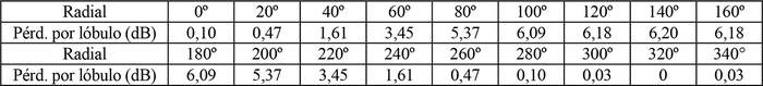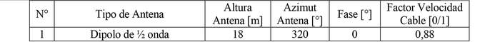 - Arreglo de antena de acuerdo a la siguiente tabla: