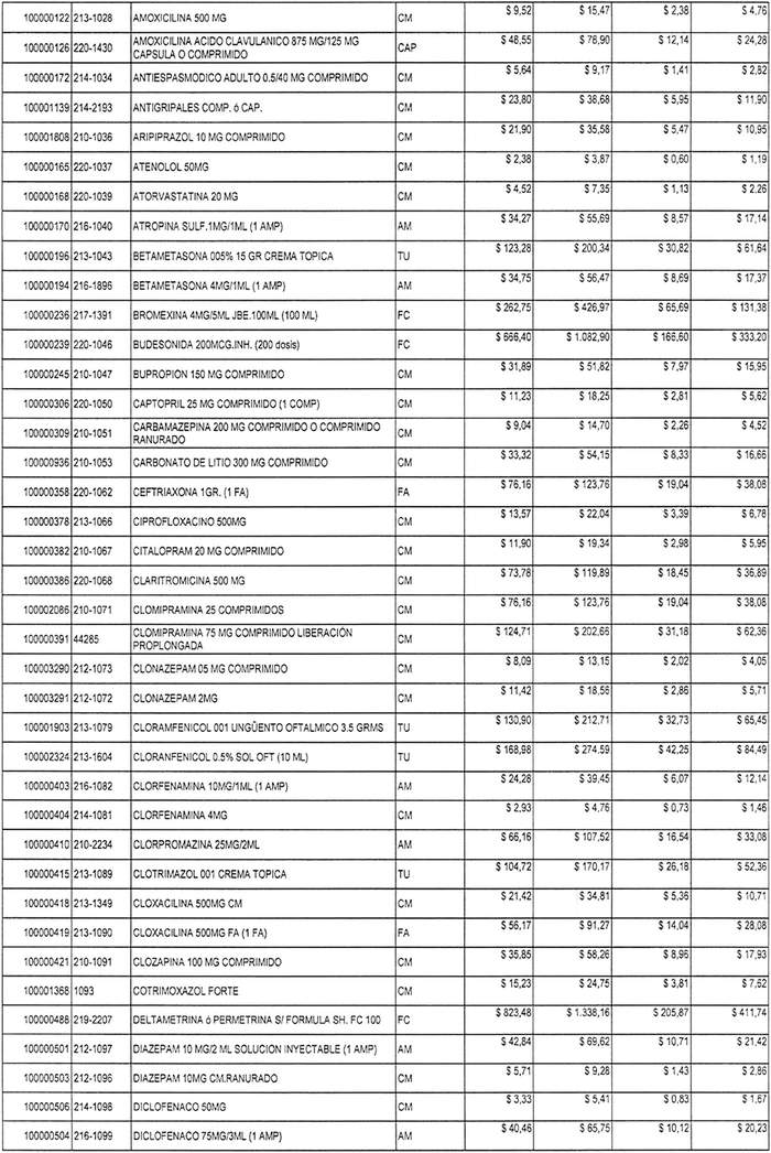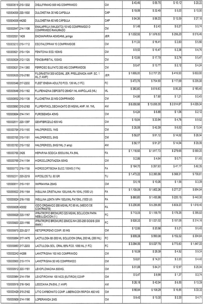 2.- Establézcanse los siguientes aranceles para los medicamentos que el Instituto Psiquiátrico "Dr. José Horwitz Barak" otorgue a pacientes beneficiarios de la ley N° 18.469 en Modalidad de Atención Institucional (MAI), correspondientes a los Grupos C y D: