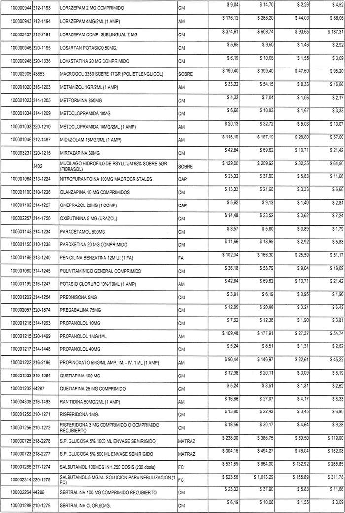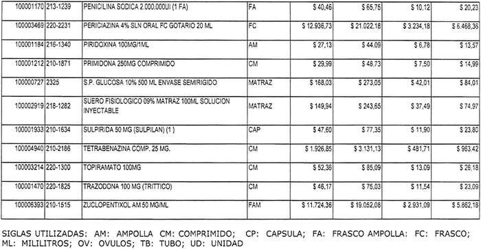 7.- La lista de precios vigentes establecida por Cenabast, publicada en su página web https://www.cenabast.cl/precios-vigentes-en-contratos/ a la fecha de emisión de la presente resolución;