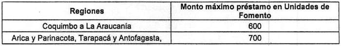 6.3. En el caso de proyectos desarrollados por Municipios, Gobiernos Regionales y Personas Jurídicas de derecho privado sin fines de lucro, y para complementar el presupuesto del proyecto, incluyendo la adquisición del terreno si se requiere, el financiamiento de las obras y complementar los recursos para los servicios de asistencia técnica, el Serviu podrá otorgar uno o más préstamos en las condiciones que se señalan en la resolución a que alude el visto j) de esta resolución, por el monto máximo por unidad de vivienda resultante que se indica en el cuadro siguiente: