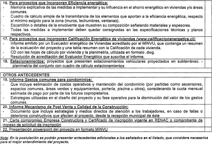 d) La resolución exenta Nº 6.625 (V. y U.), de 2016, y sus modificaciones, que Aprueba Cuadro Normativo y Tabla de Espacios y Usos Mínimos para el Mobiliario, para Proyectos del Programa Fondo Solidario de Elección de Vivienda, en su ítem II.