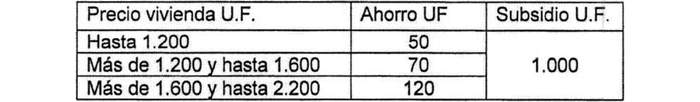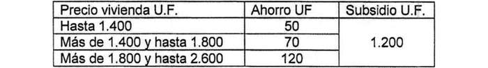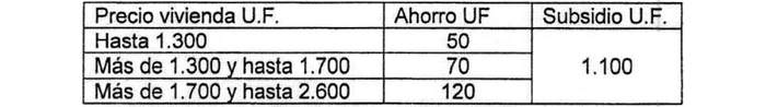Los montos de subsidio y ahorro mínimo, según el precio de la vivienda, serán los siguientes: