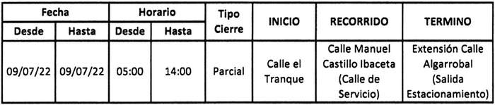 PROHÍBE CIRCULACIÓN DE VEHÍCULOS MOTORIZADOS EN VÍA(S) Y TRAMO(S) QUE INDICA