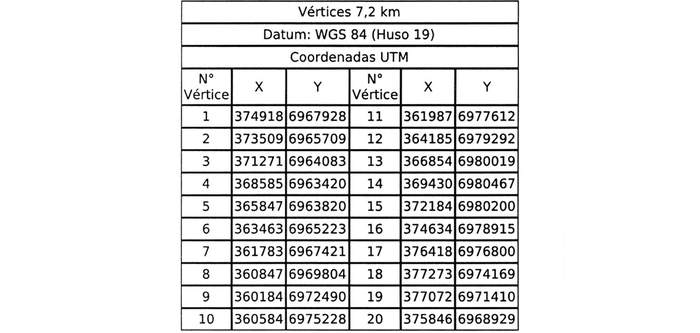 El nuevo polígono incluye 20 vértices, determinado por las siguientes coordenadas UTM: