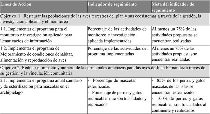 Objetivo 2: Reducir el impacto y número de las principales amenazas para las aves de Juan Fernández a través de su gestión, y la vinculación comunitaria.