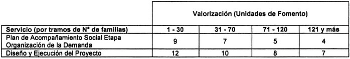 El Plan de Acompañamiento Social que presentará la Entidad Patrocinante incluirá las actividades señaladas, las que deberán ser aprobadas por el Serviu, pudiendo éste impartir instrucciones operativas para el desarrollo de las actividades señaladas durante su ejecución. Para el desarrollo de estas labores, las que deberán asegurar y resguardar el valor de la cultura y la pertinencia en el diseño del proyecto habitacional y del Plan de Acompañamiento Social, los honorarios a percibir por la Entidad Patrocinante por el servicio de "Plan de Acompañamiento Social Etapa Organización de la Demanda, Diseño y Ejecución del Proyecto" en Unidades de Fomento por tramo de familia será el siguiente: