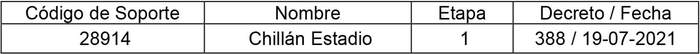1. Autorízase a la concesionaria para eliminar una (1) torre, denominada "Chillán Estadio" etapa 1, autorizada por decreto exento Nº 388 de 2021, según se indica a continuación: