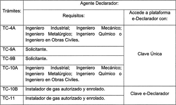 1.5 TC-11: Declaración de Almacenamiento de Cilindros de Gas Licuado de Petróleo: Este trámite se utiliza para inscribir en SEC los recintos destinados a almacenar cilindros de GLP portátiles.