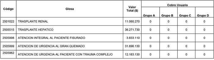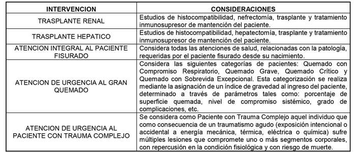 La contribución estatal de 100% afecta a la totalidad de las prestaciones otorgadas, lo que incluye hospitalización, exámenes, procedimientos diagnósticos y terapéuticos, medicamentos e insumos asociados a las intervenciones quirúrgicas antes señaladas.