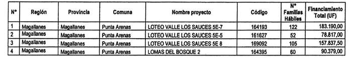 2. Apruébase la nómina de proyectos seleccionados con su respectivo financiamiento total, para el otorgamiento de subsidios del Programa Habitacional Fondo Solidario de Elección de Vivienda, en la alternativa de postulación colectiva, para proyectos de Construcción en Nuevos Terrenos, en la Región de Magallanes y de la Antártica Chilena, correspondiente al proceso de selección cuyo cierre de postulación se verificó el día 5 de julio de 2022, del llamado efectuado por la resolución exenta N° 403 (V. y U.), de 2022: