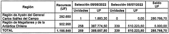 4. Los recursos comprometidos en el resuelvo 2. de la presente resolución, para los proyectos seleccionados en el llamado realizado mediante la resolución exenta N° 403 (V. y U.), de 2022, cuyo cierre de postulación se efectuó el día 5 de julio de 2022, se señalan en el siguiente cuadro, incluyendo la suma total de familias beneficiadas y las Unidades de Fomento comprometidas, considerando los montos de subsidio de los proyectos, incluidos sus respectivos servicios de asistencia técnica y fiscalización técnica de obras para cada región del país: