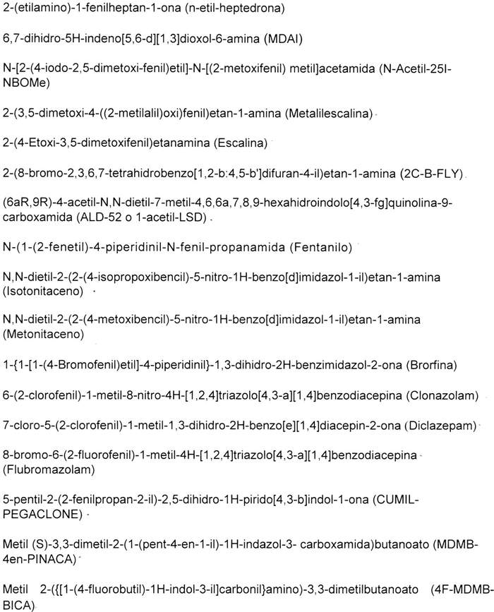 Artículo primero: Incorpórense al listado de sustancias o drogas estupefacientes o sicotrópicas del inciso primero del artículo 1º, del decreto supremo Nº 867, de 2007, del Ministerio del Interior, actual Ministerio del Interior y Seguridad Pública, que aprobó el reglamento de la ley Nº 20.000, las siguientes sustancias: