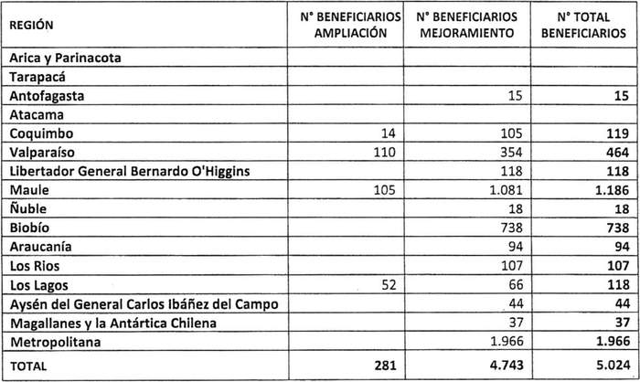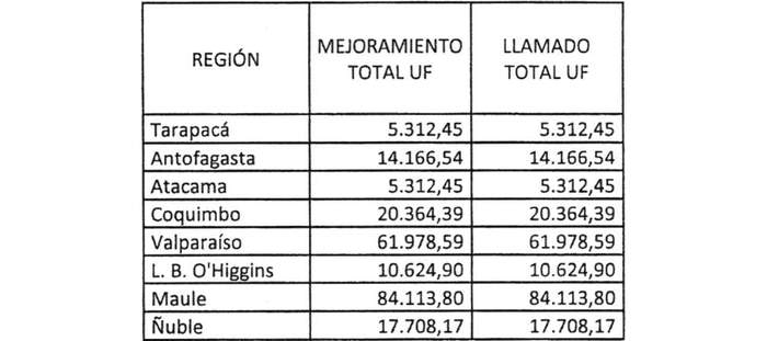 En el caso de Mejoramientos, la revisión se efectuará en base a los recursos con que cuenta cada región, y para determinar la lista de espera se aplicará el 100% de dichos recursos.