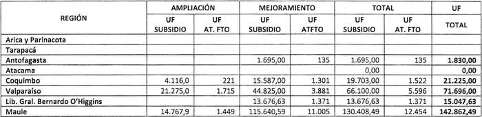 "En el caso de las líneas de proyectos de Ampliación, de Atención de Familias con Integrante con Discapacidad o de Atención de Cités o Viviendas Patrimoniales, se deberán evaluar el total de los proyectos postulados, y el monto nacional para seleccionar indicado en la siguiente tabla se distribuirá por región proporcionalmente, según la cantidad de familias que postulen en cada una de las líneas. Para la selección, cada región previamente calculará el puntaje de los proyectos postulados para efectuar su prelación, seleccionando la cantidad de proyectos que alcancen a financiarse con los recursos disponibles, según la distribución señalada precedentemente.
