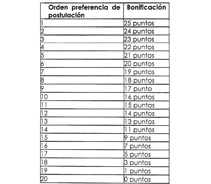 . En el artículo segundo, letra b) punto 4), se debe reemplazar la tabla que indica sólo 10 posibles preferencias por la que se señala a continuación: