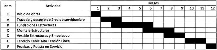 Artículo 11.- El plazo de construcción del proyecto desde el inicio de los trabajos hasta la terminación total de las obras será de doce (12) meses, considerando el inicio de ellas después de 30 días contados desde la reducción a escritura pública del presente decreto de concesión eléctrica definitiva. Sin perjuicio de lo anterior, la empresa propietaria del proyecto, podrá dar inicio a los trabajos en el evento que obtenga todas las autorizaciones y derechos que lo habiliten para ello. Los plazos para su terminación por etapas y secciones serán los que se indican a continuación: